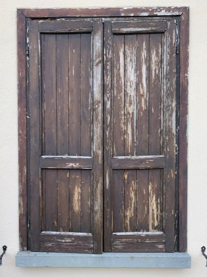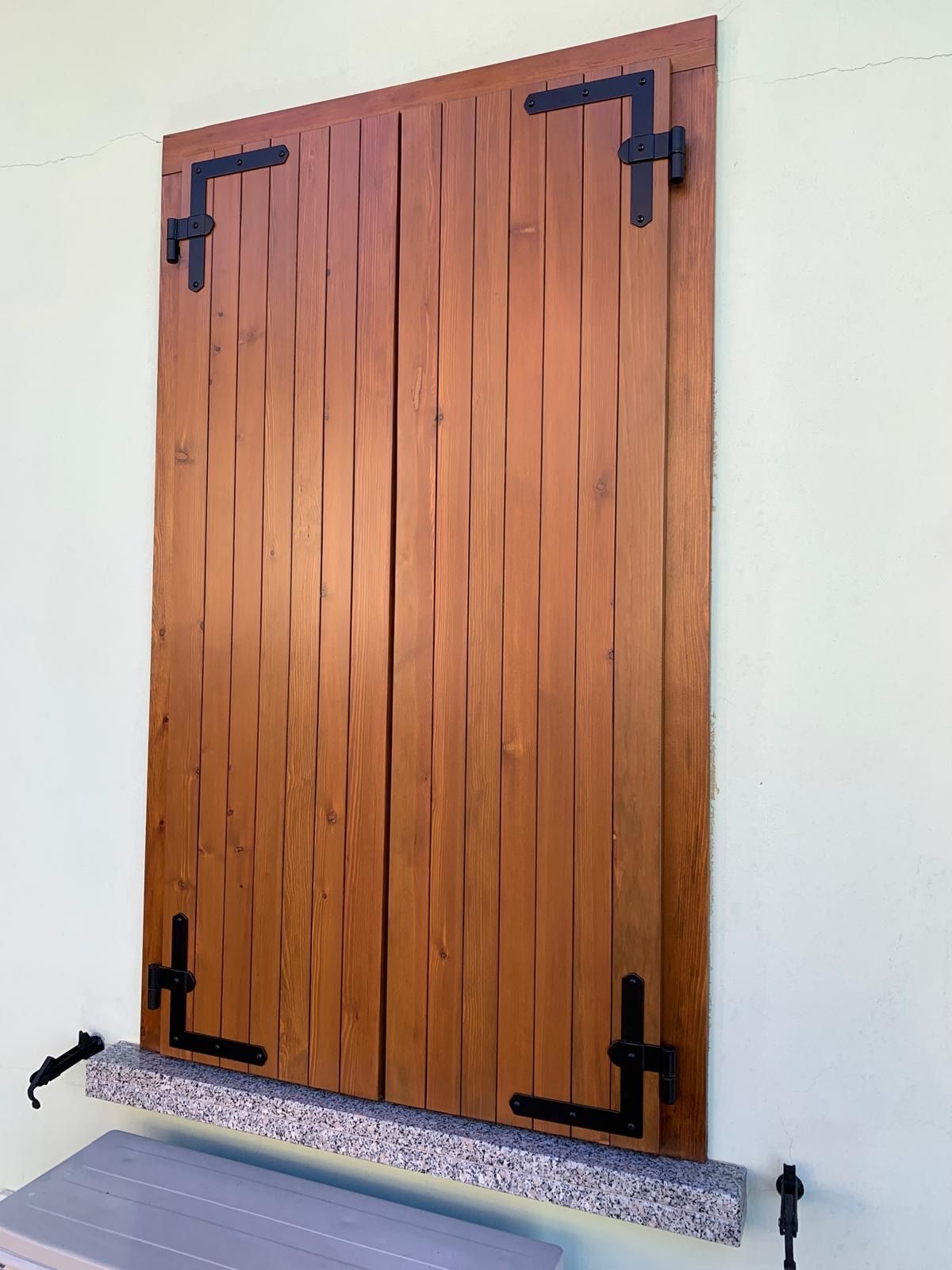- smontaggio ferramenta con numerazione, sverniciatura e riverniciatura con mano di antiruggine, verniciatura nitro opaca e sostituzione viti.
